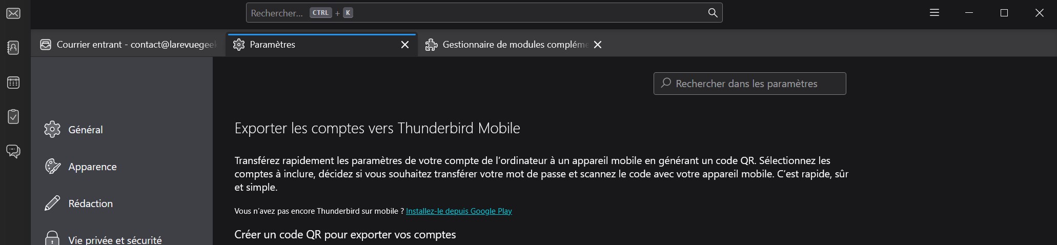 Export ultra-simple vers Thunderbird Mobile