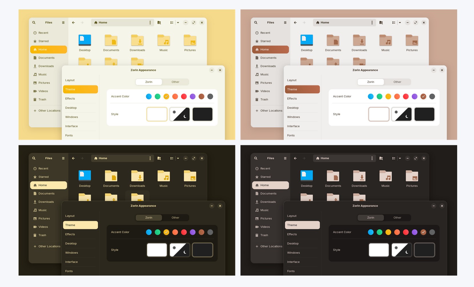 Deux nouveaux accents de couleur font leur apparition : jaune et marron, disponibles en mode clair ou sombre.