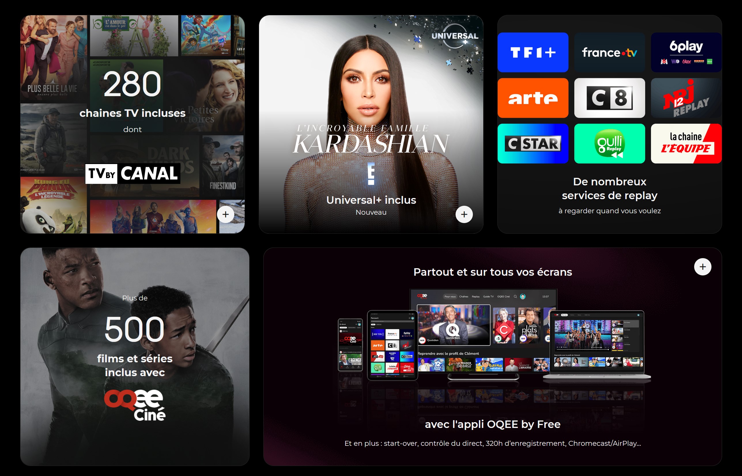 Plus de 280 Chaînes en Direct : Avec l'application OQEE by Free, incluse dans l'offre de la Freebox V9, les utilisateurs bénéficient d'un accès à plus de 280 chaînes en direct. Cela offre une flexibilité et une diversité sans précédent pour les amateurs de télévision en tous genres.