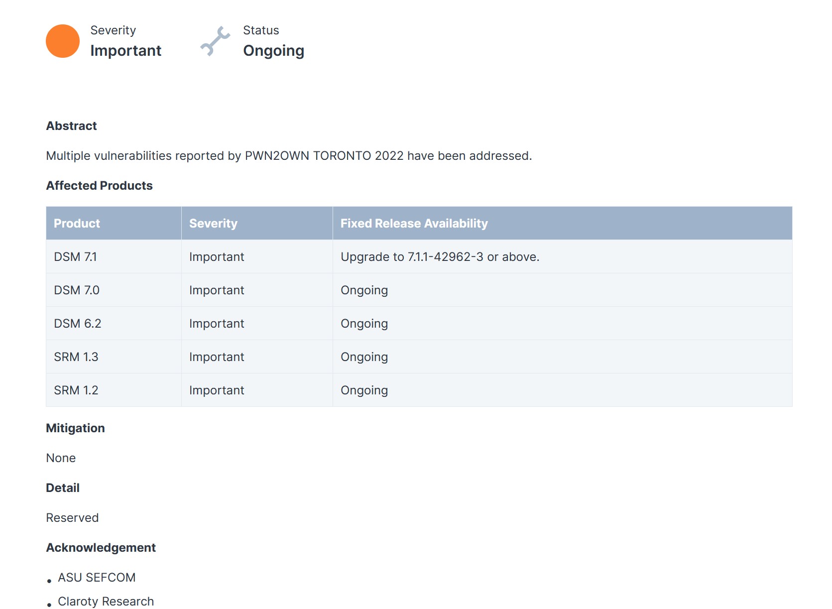 Finalement aucune nouveautés, puisque d'après la note de verison mise en ligne par Synology, cette mise à jour qui a été publiée le 08 Décembre 2022, cet update vient surtout combler de multiples failles de sécurités classé comme Important d'après la note publié par Synology.