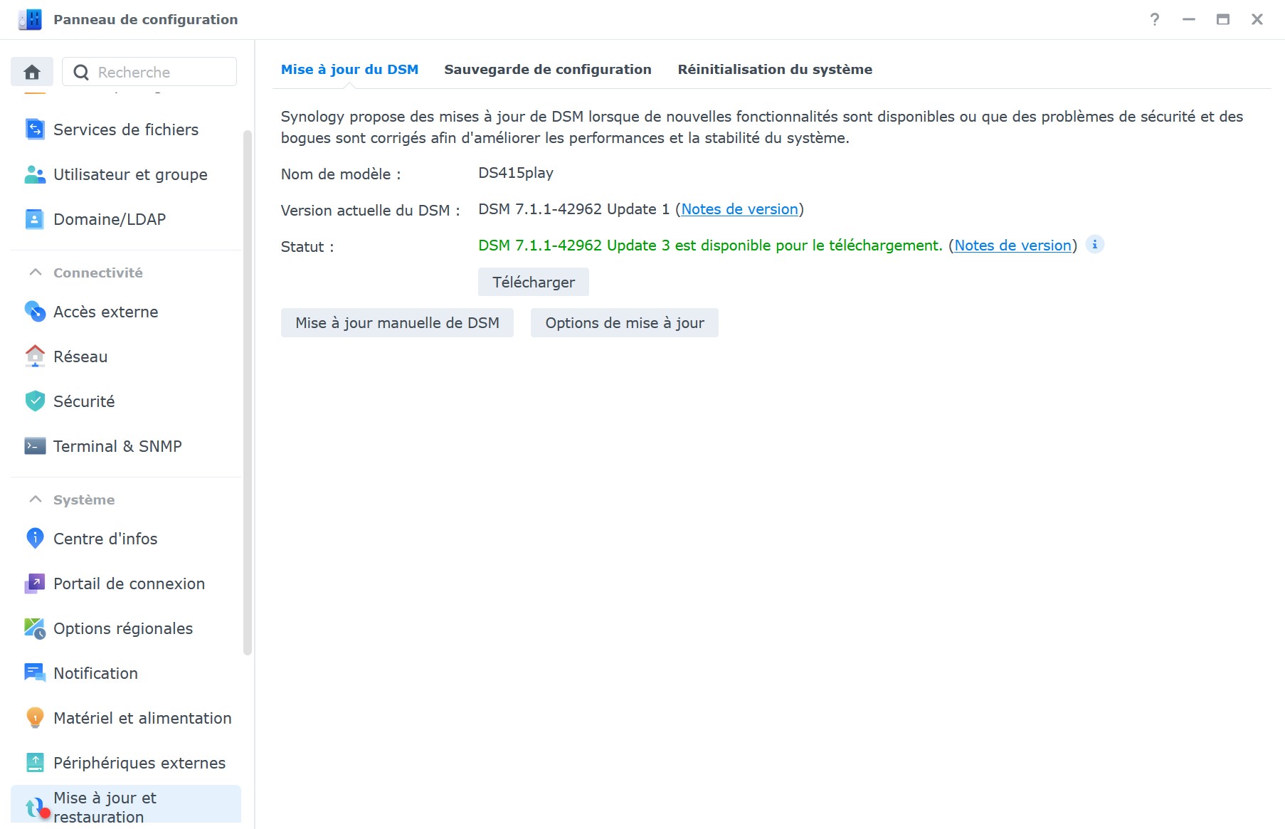 Pour mettre à jour votre NAS, cela se passe dans Panneau de configuration > Mise à jour et Restauration