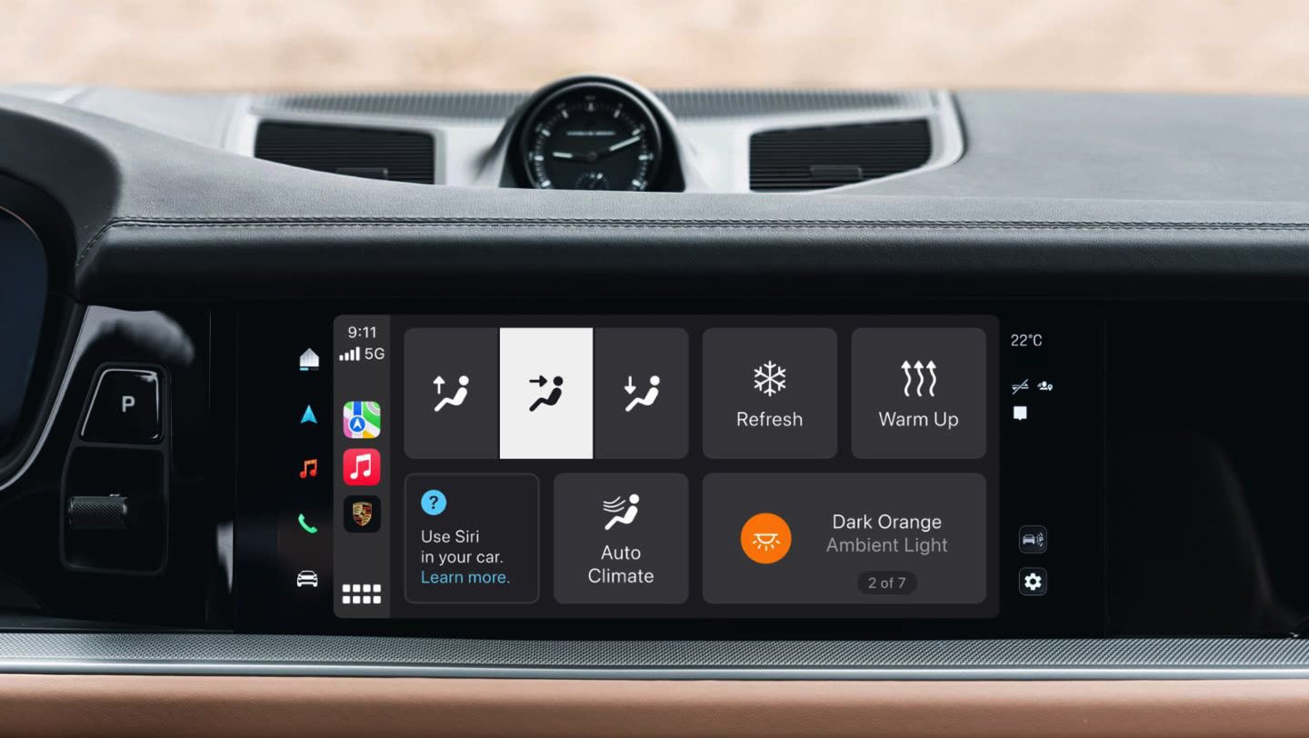 En outre, My Porsche permet l'intégration de comptes existants avec des services tiers, tels qu'Apple Music, aux applications propres au Porsche Communication Management (PCM). Les utilisateurs peuvent également contrôler des paramètres audio, comme la sélection de stations de radio et la modification des profils sonores, ainsi que des options d'éclairage ambiant. Ces diverses fonctions peuvent être combinées en modes de bien-être, comme "relax", "warm up" et "refresh", accessibles en un clic. Toutes ces nouvelles caractéristiques sont compatibles avec Siri, l'assistant vocal d'Apple, pour une utilisation optimale via CarPlay.