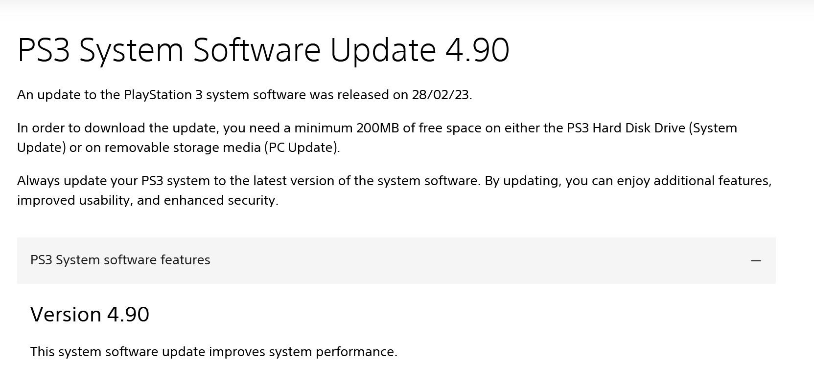 Voici la note officiel de Sony : https://www.playstation.com/en-ca/support/hardware/ps3/system-software/