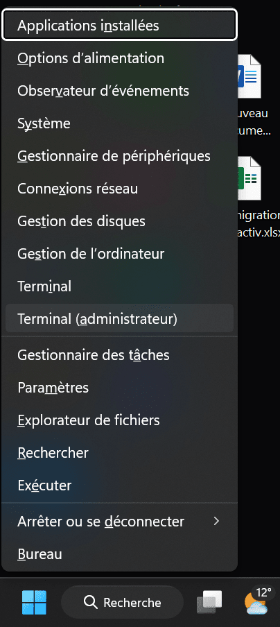 - Ouvrez le menu Windows en appuyant Touche Win + R, puis cliquez sur "Terminal" pour ouvrir le PowerShell