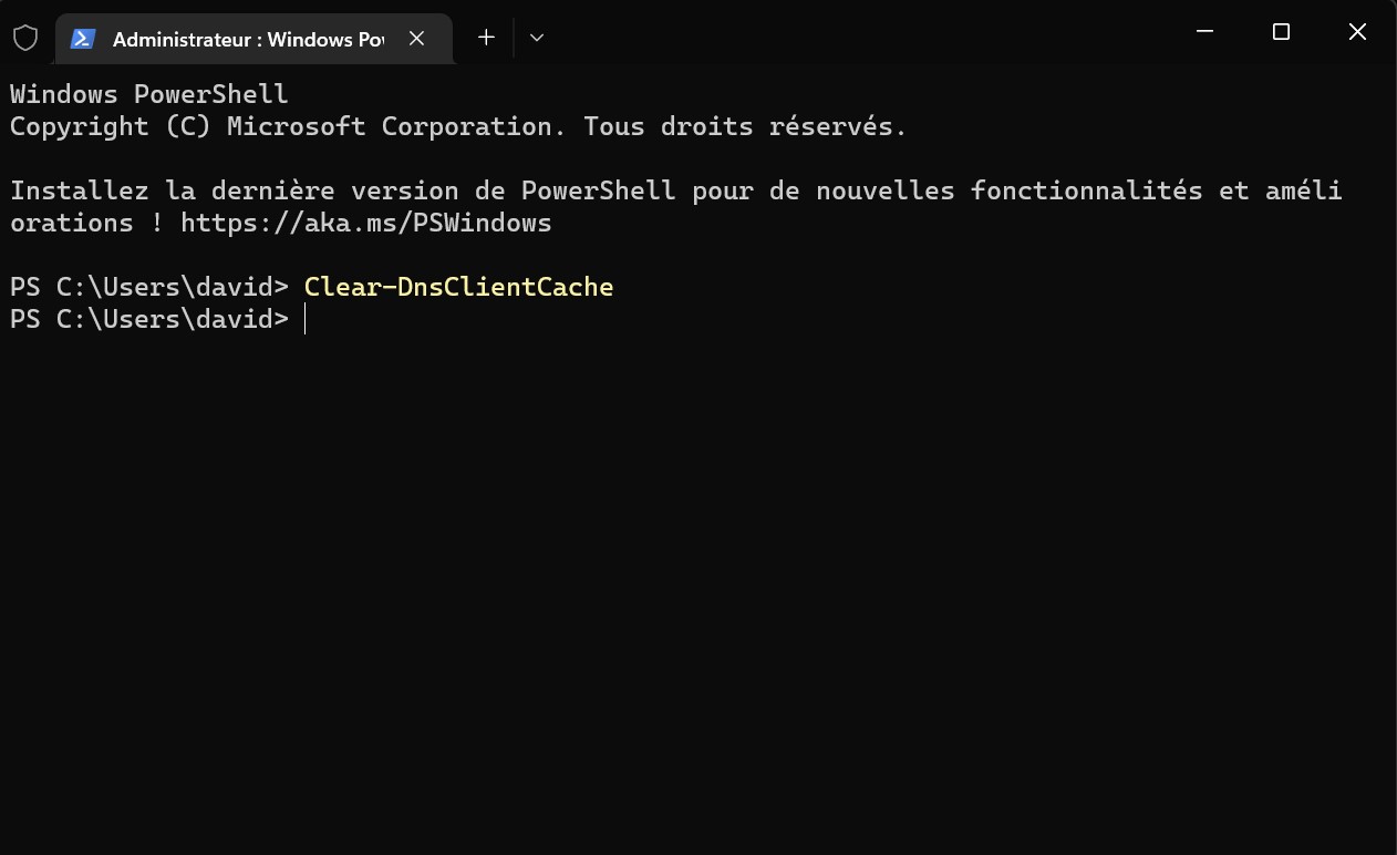 Si vous préférez utiliser le Powershell de Windows pour vider le cache DNS, vous pouvez le faire en suivant ces étapes :