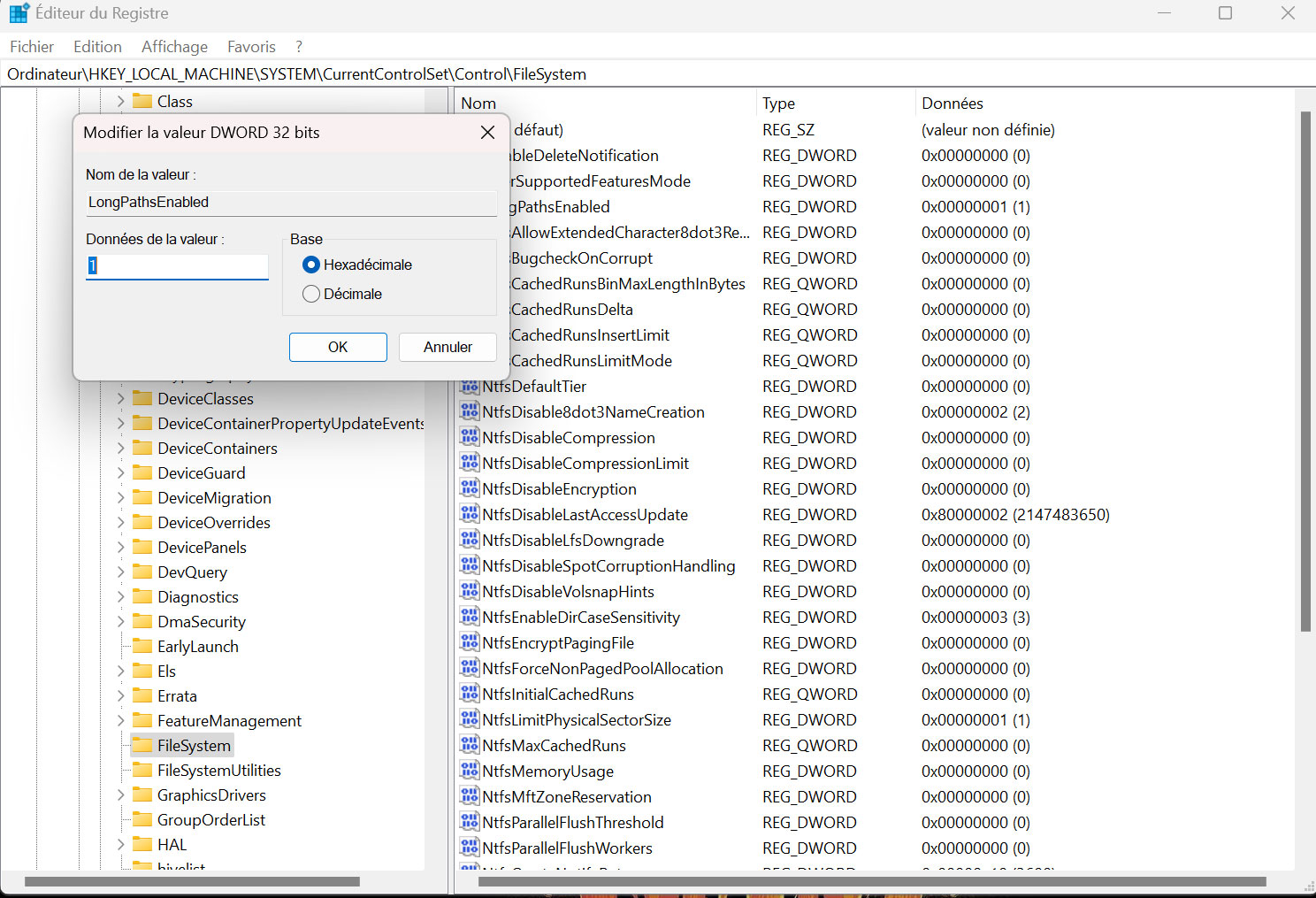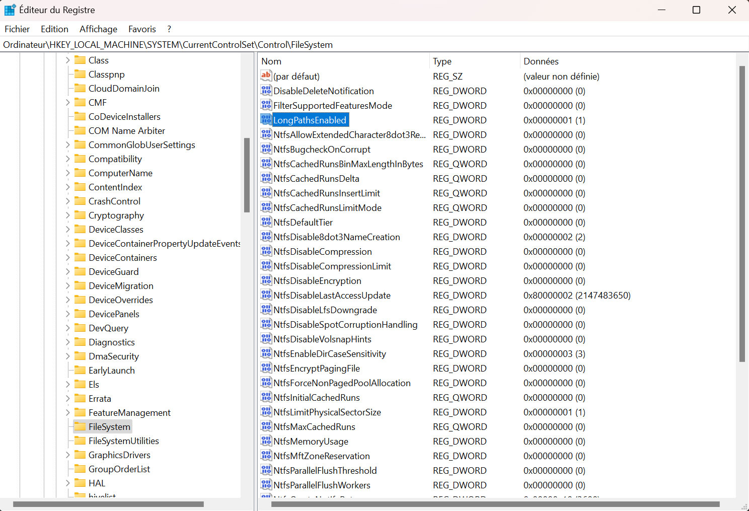 - Trouvez la valeur "LongPathsEnabled" et double-cliquez dessus.
