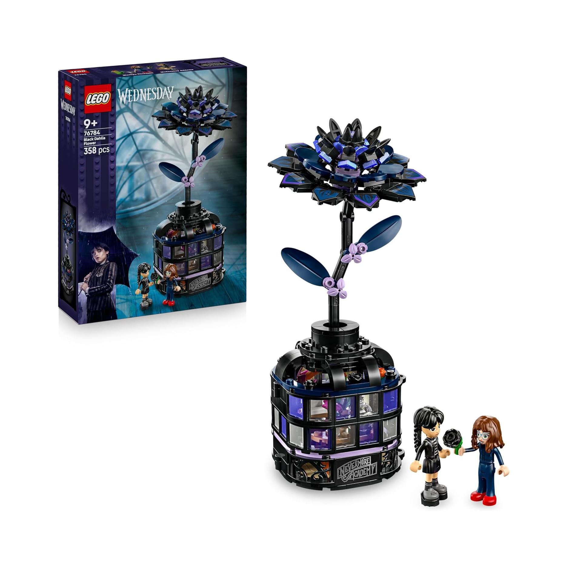 Le set LEGO Le Dahlia Noir (76784) est conçu pour captiver les enfants et les adultes passionnés par la série Mercredi, en reproduisant une fleur artificielle ouvrante qui révèle un univers miniature riche en détails. Ce modèle s’articule autour d’un vase noir stylisé, inspiré directement du dahlia emblématique de la série, et dont l’intérieur peut être ouvert pour découvrir une mini-serre, un espace de jeu et un meuble amovible. Ces éléments permettent d’explorer des scènes narratives, comme celles de la première saison, où la fleur joue un rôle central dans l’intrigue. La structure modulaire du vase offre ainsi une dimension interactive, invitant à créer des histoires tout en découvrant les mécanismes cachés du jouet. Le set inclut deux mini-poupées LEGO représentant Mercredi Addams et la professeure Marilyn Thornhill, deux personnages clés de la série.