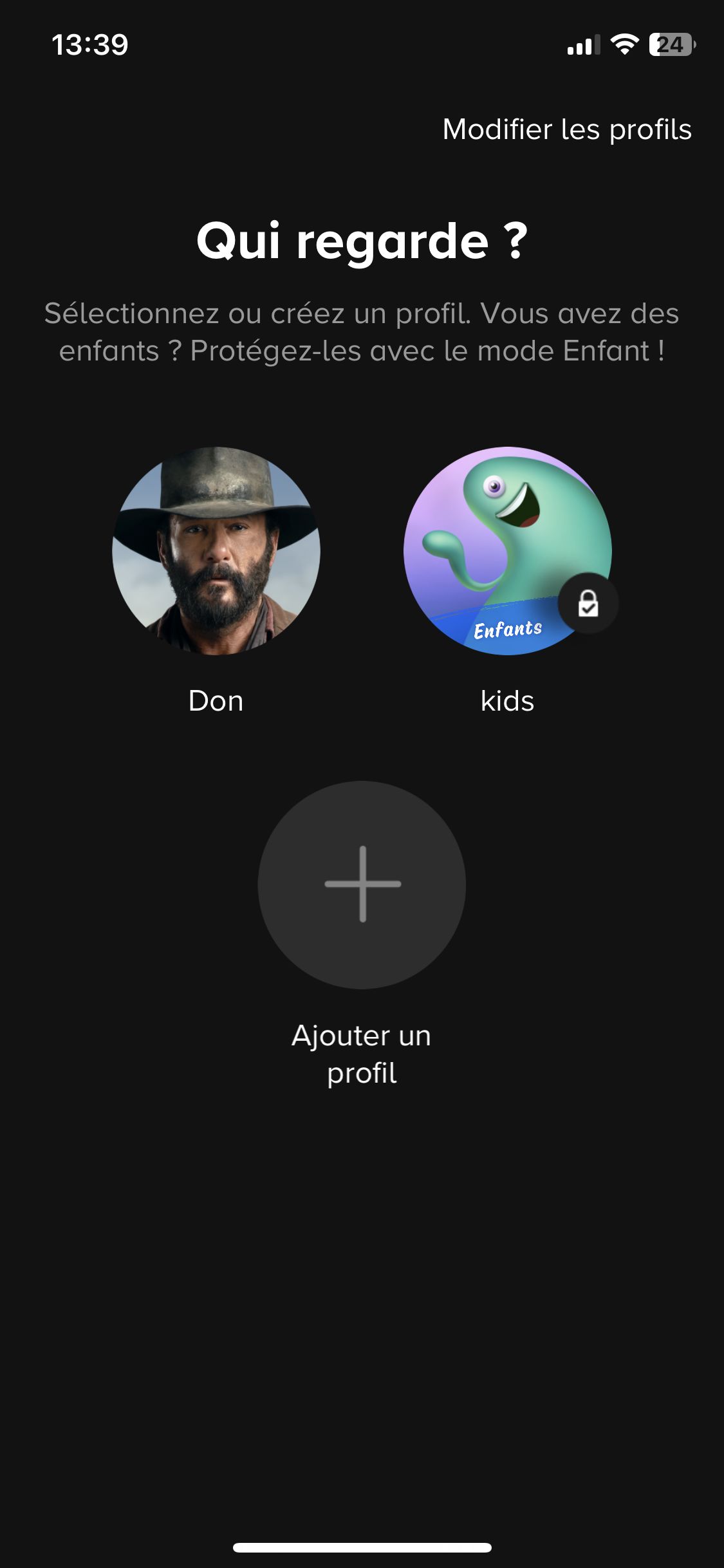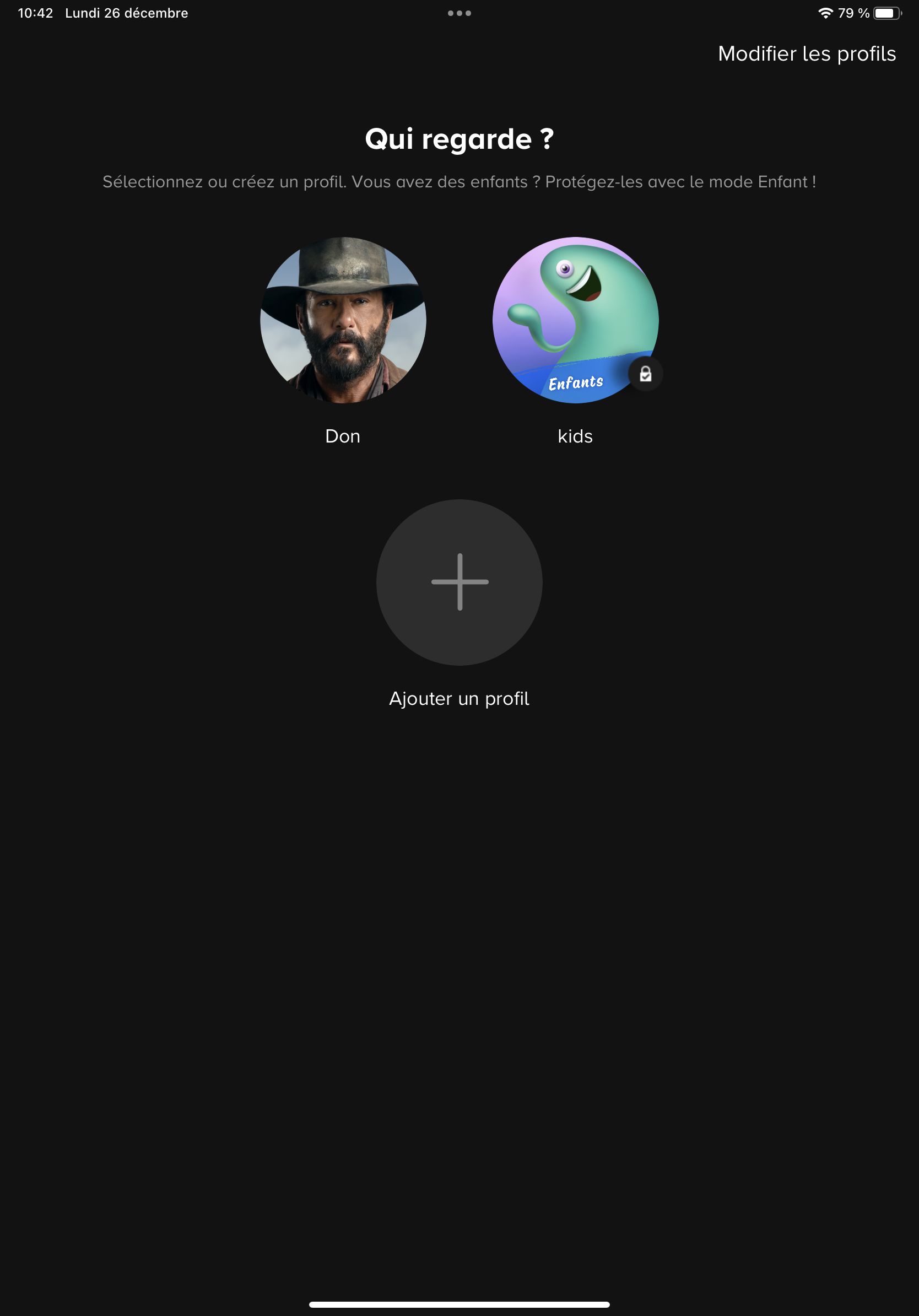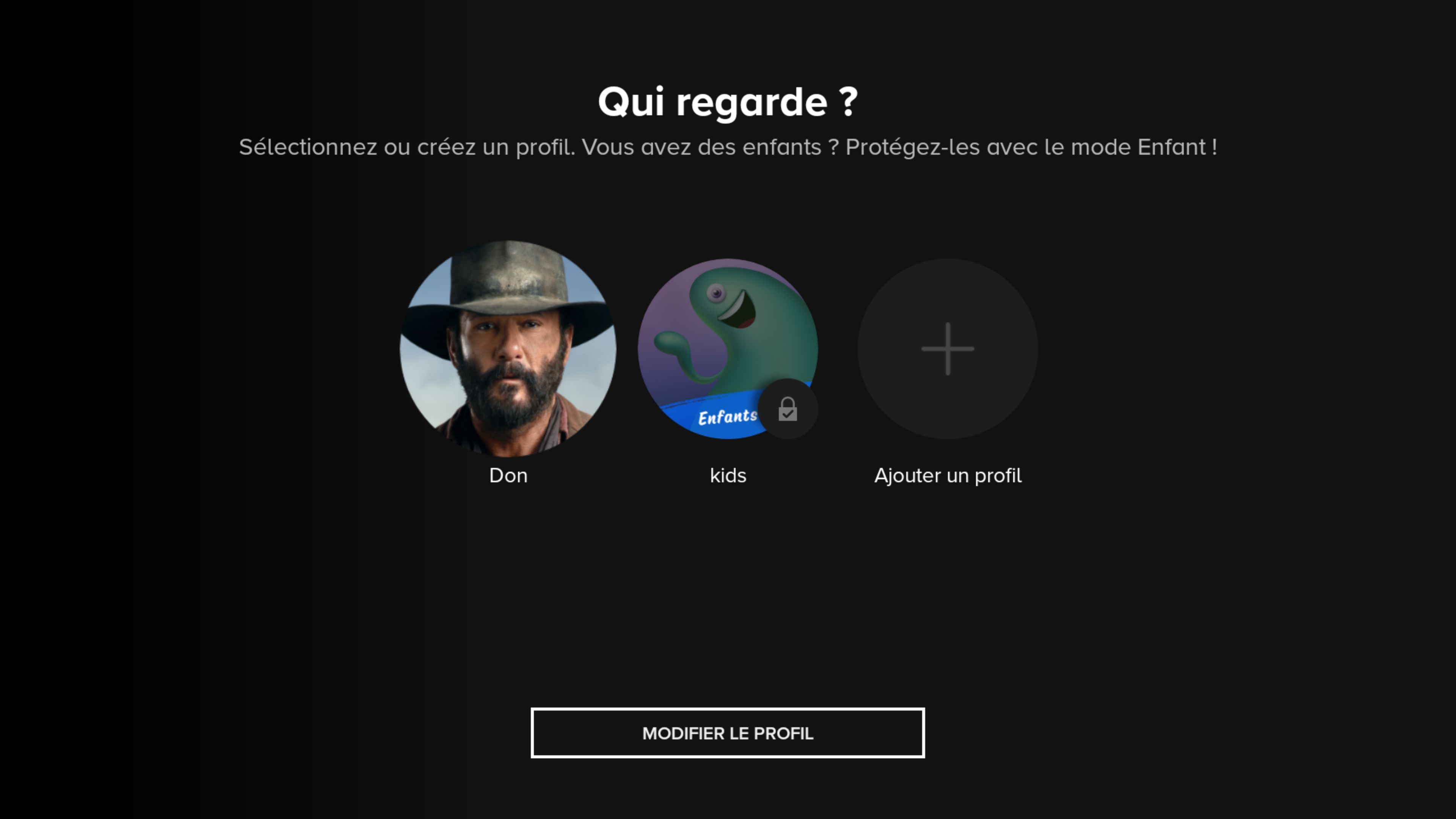 On peut créer 2 types de profils, adulte ou enfant. Pour ces derniers, on a le choix entre différentes tranches d'âges permettant d'adapter le contenu en fonction de l'âge de vos enfants, très bonne initiative ici. Une fois votre profil créé, on rentre dans le vif du sujet, l'interface principale.